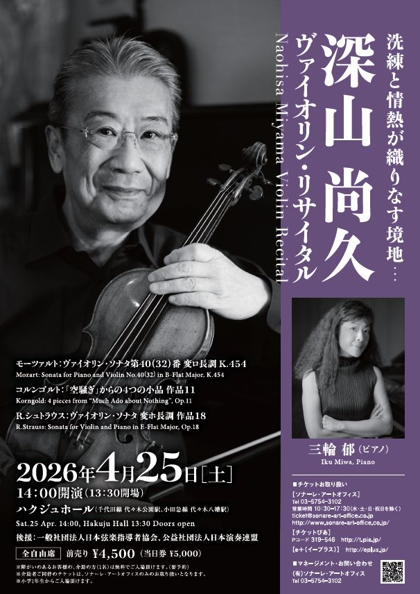 2026年4月25日(土) 深山尚久ヴァイオリン・リサイタル