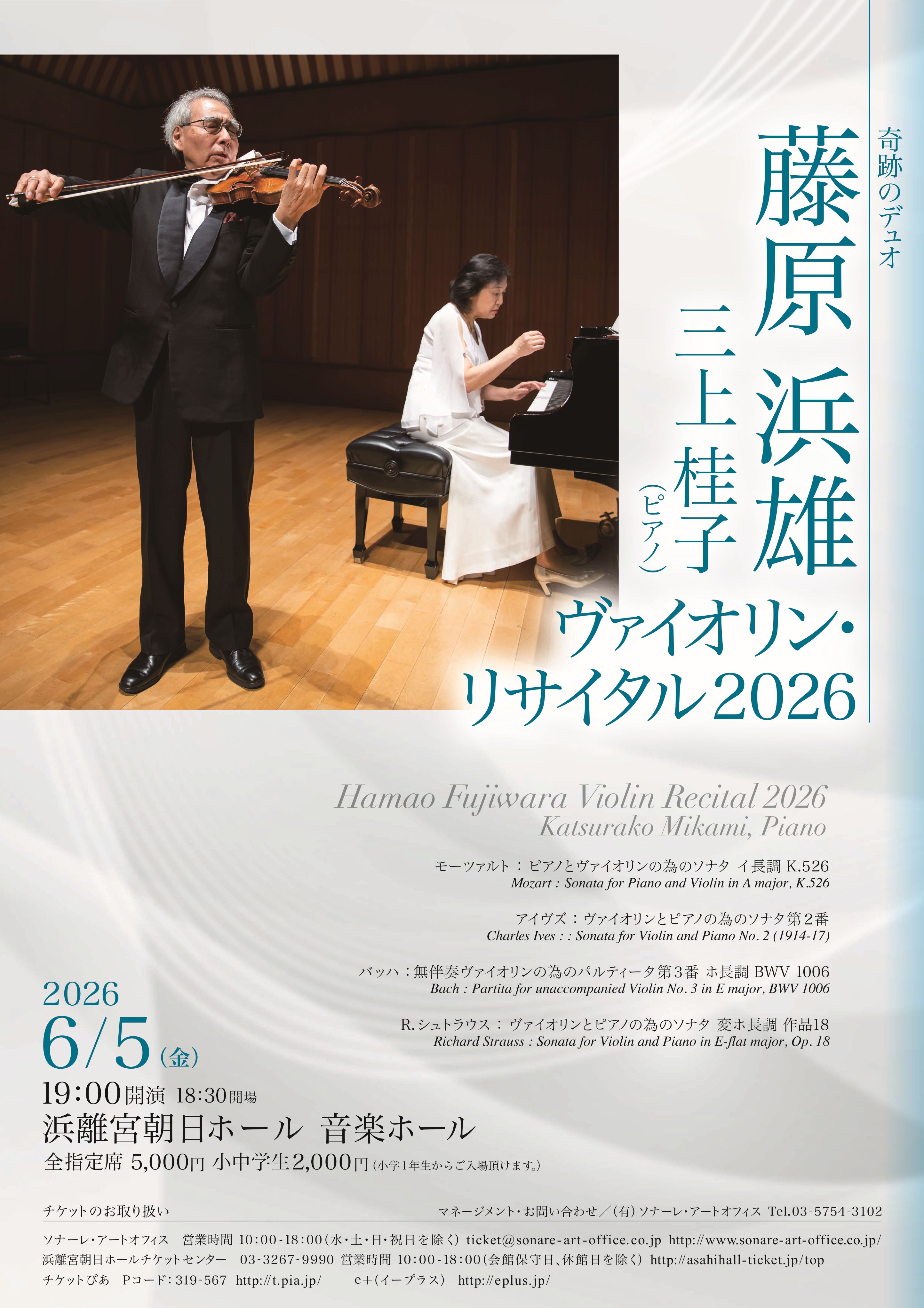 2026年6月5日(金) 藤原浜雄ヴァイオリン・リサイタル2026
